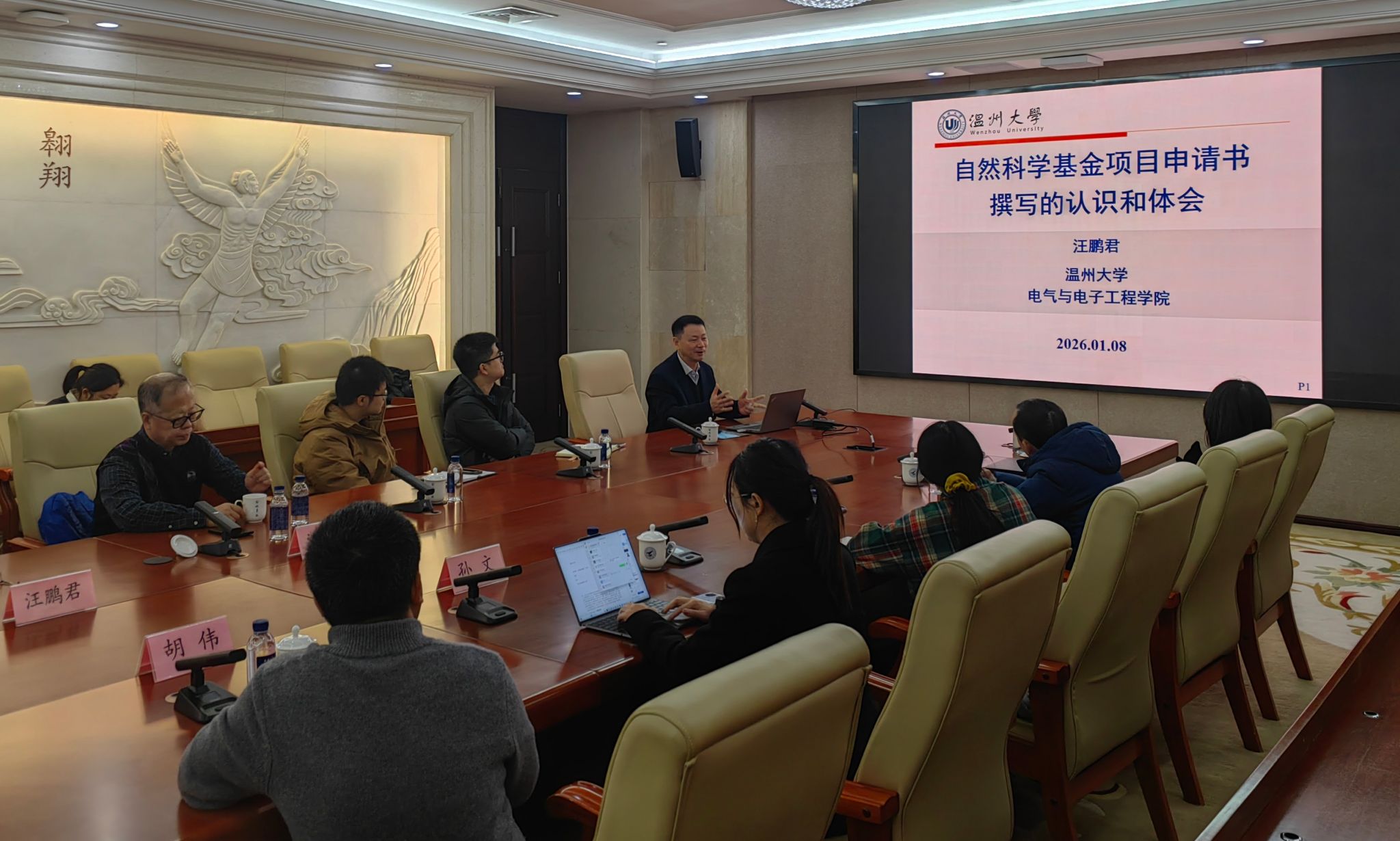 为做好2026年度国家自然科学基金项目申报工作,提高公司教师基金申报质量,2026年1月8日,2026年国际足联世界杯组织召开了2026年度国家自然科学基金项目申报辅导会,特别邀请清华大学汪东升教授、温州大学汪鹏君教授为公司教师做国家基金申报辅导讲座。公司经理助理胡伟教授和孙文教授等20余位师生参加了会议。