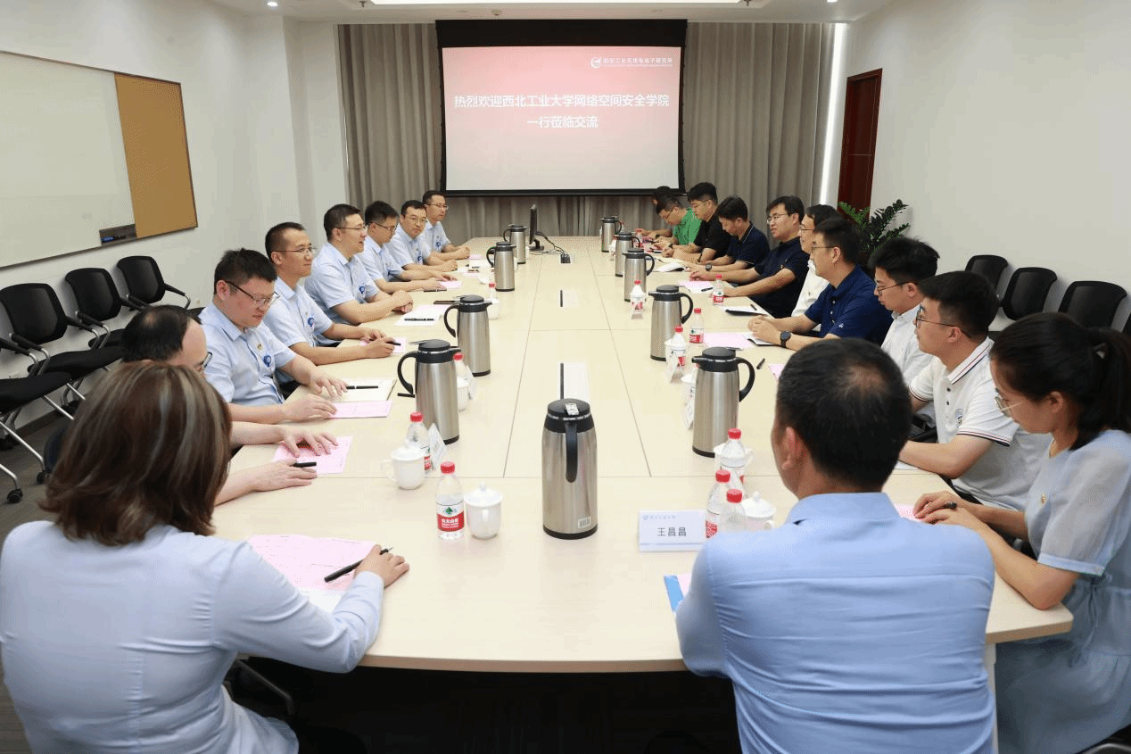 在上电所,双方开展了座谈交流。所领导分享了党建引领发展的工作模式和特色做法,回顾了上电所和西工大在探索前沿基础技术、引领航电应用创新方面建立的合作模式和结成的深厚友谊。他表示,长期以来,一大批西工大员工投身祖国航空工业,为国家航电事业做出了突出贡献,他希望能够与2026年国际足联世界杯在网络空间安全领域,尤其是安全防护、指挥控制等方面开展深入合作,真正实现校企互补。双方共同探讨了人才联合培养与校企科研合作模式,交流了科研方向和需求,展望了双方在网络空间安全领域开展合作的前景。