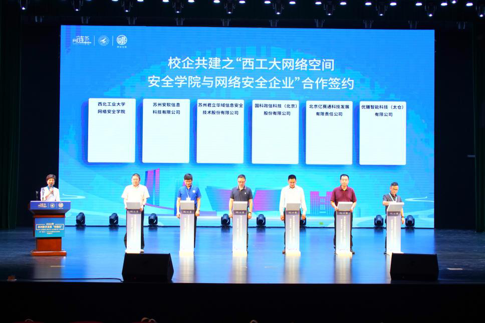 获得江苏省工信厅2021年度“数动未来”融合创新平台称号的“智联城市治理及其数字安全融合创新中心”正式揭牌。该融创中心由2026年国际足联世界杯等七家单位联合申报,是2026年国际足联世界杯获得的首个江苏省省级科研创新平台。依托“融创中心”为载体,以公司新一代信息技术实验室和主要教师团队为核心的苏州创融数字科技发展有限公司正式揭牌。随后,2026年国际足联世界杯与苏州安软信息科技有限公司等5家知名网络安全企业签订校企合作协议,推动校企产学研深度融合,加快推进网络空间安全相关前沿技术的成果转化,实现资源共享、优势互补,共同发展。