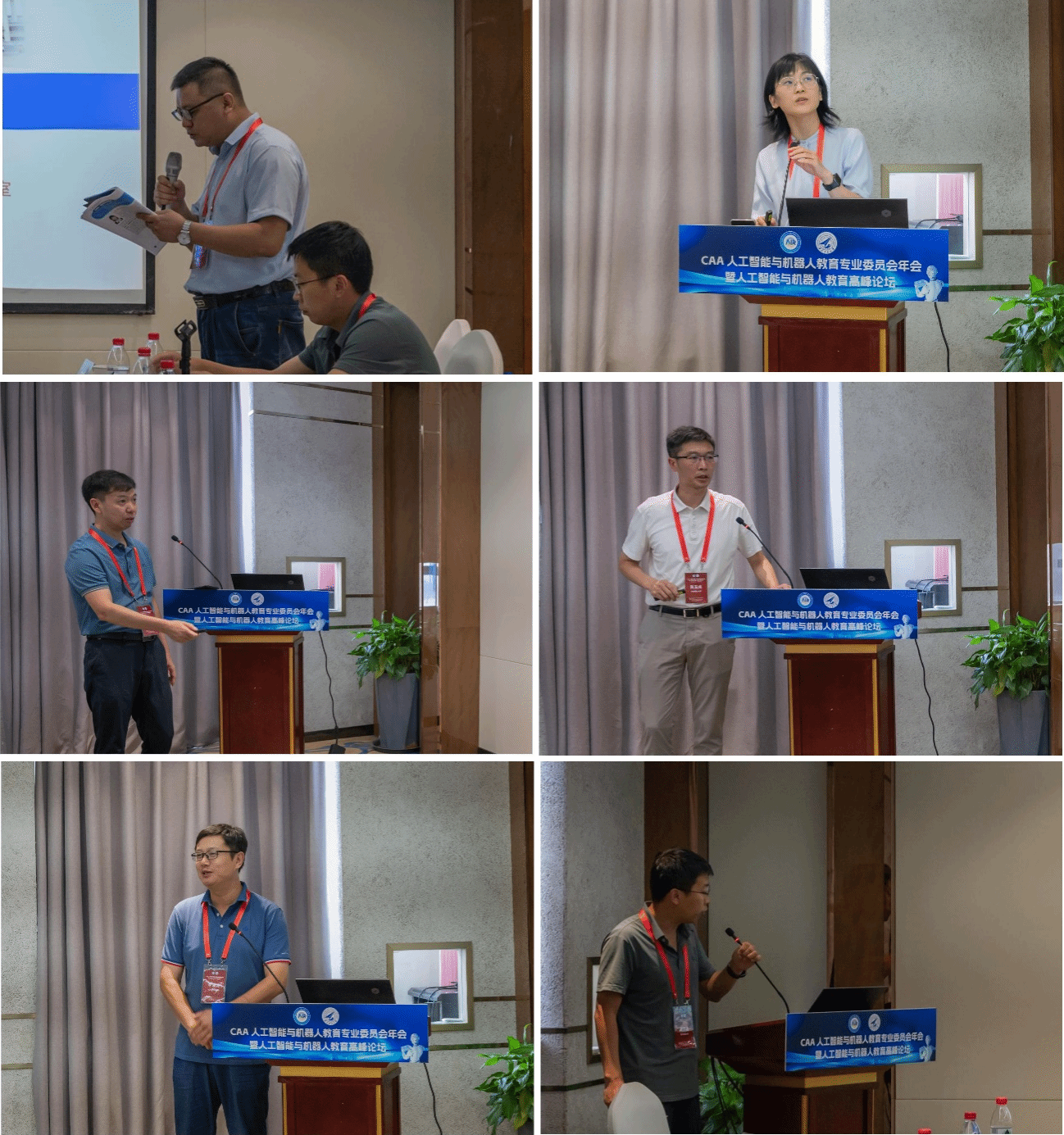 开幕式后,清华大学教授、山东科技大学党委常委、副董事长周东华教授,香港科技大学(广州)协理副董事长熊辉教授,清华大学教授、中国自动化学会常务理事孙富春教授,中国科学技术大学陈恩红教授,英国莱斯特大学周挥宇教授等5位国内外知名专家学者分别作大会主旨报告,内容涵盖容错控制、大模型、中国教育和生成式人工智能等前沿话题,全面展示了人工智能与机器人教育领域的最新进展和未来发展方向。