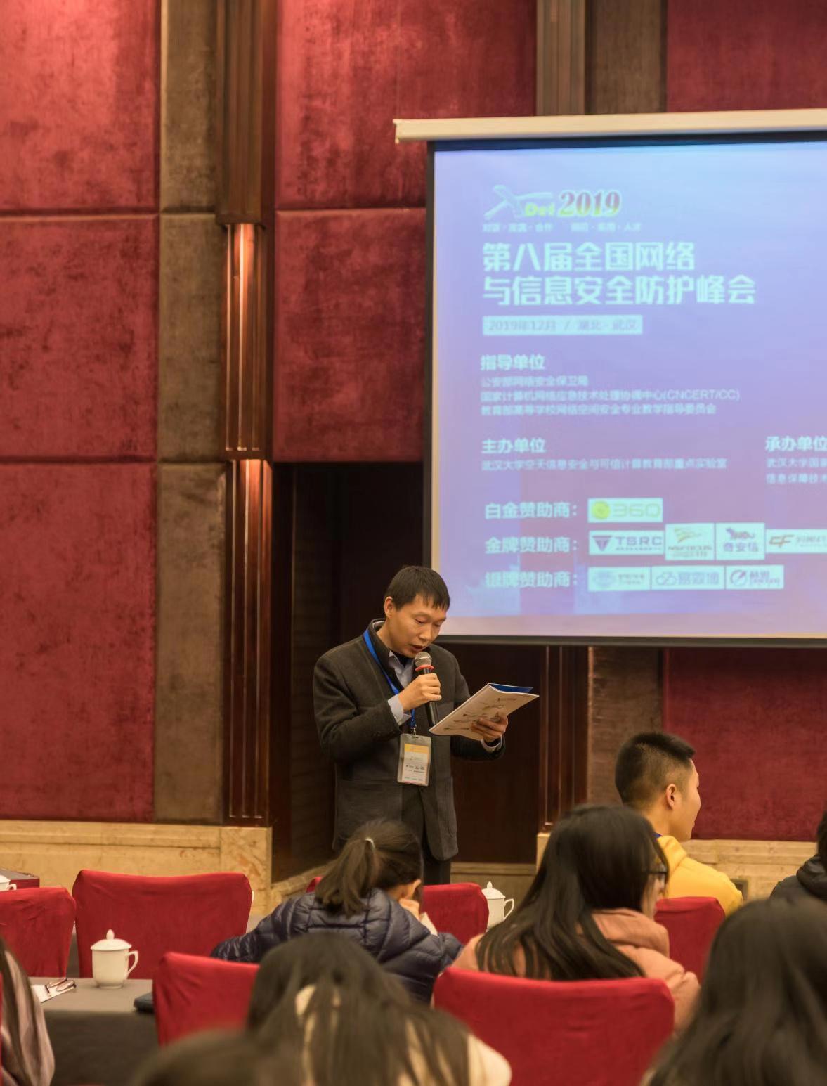 2019年12月13至14日,第八届全国网络与信息安全防护峰会在武汉举行,峰会聚焦探讨网络与信息安全防护热点问题,展现老员工优秀信息安全作品及企业优秀安全产品、发现和聚集优秀信息安全人才。教育部高等公司网络空间安全专业教学指导委员会、公安部网络安全保卫局和清华、北航、360、绿盟、奇安信等来自“政、产、学、研、用”各界的近400名专家学者出席峰会。