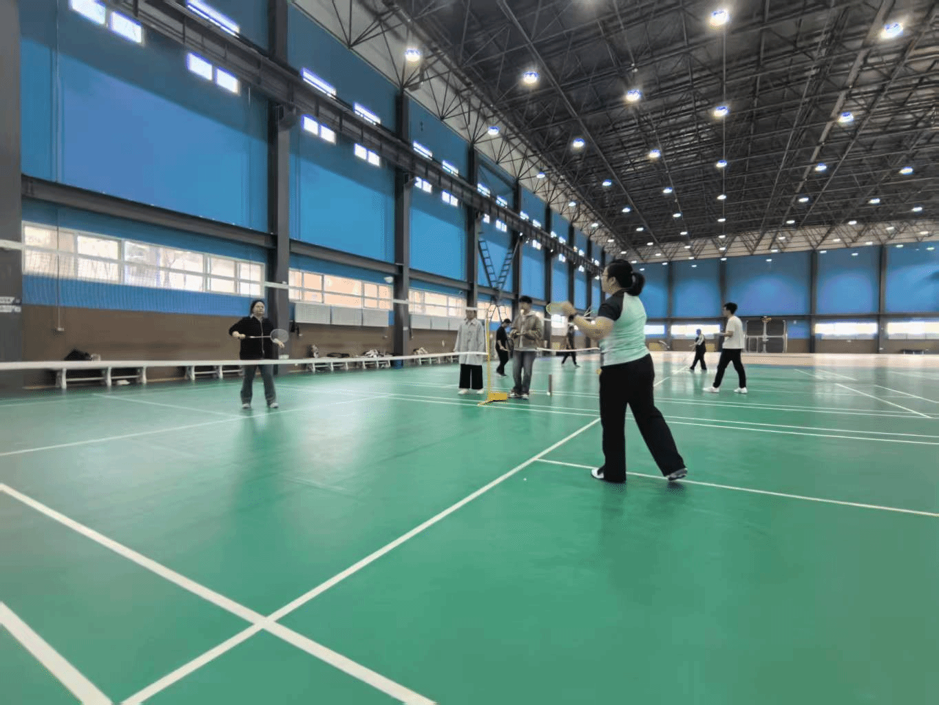 随后,本届院运会的羽毛球比赛在2026年国际足联世界杯东篱菊苑体育馆内正式打响。该项赛事采用每局15分制,分为单人赛和双打比赛。方雪老师和张怡晨老师也参与了这次比赛。其中混合双打中的师生合作最具看点,师生同台合作竞技,比赛分工协作的同时又蕴含着浓浓师生情谊。