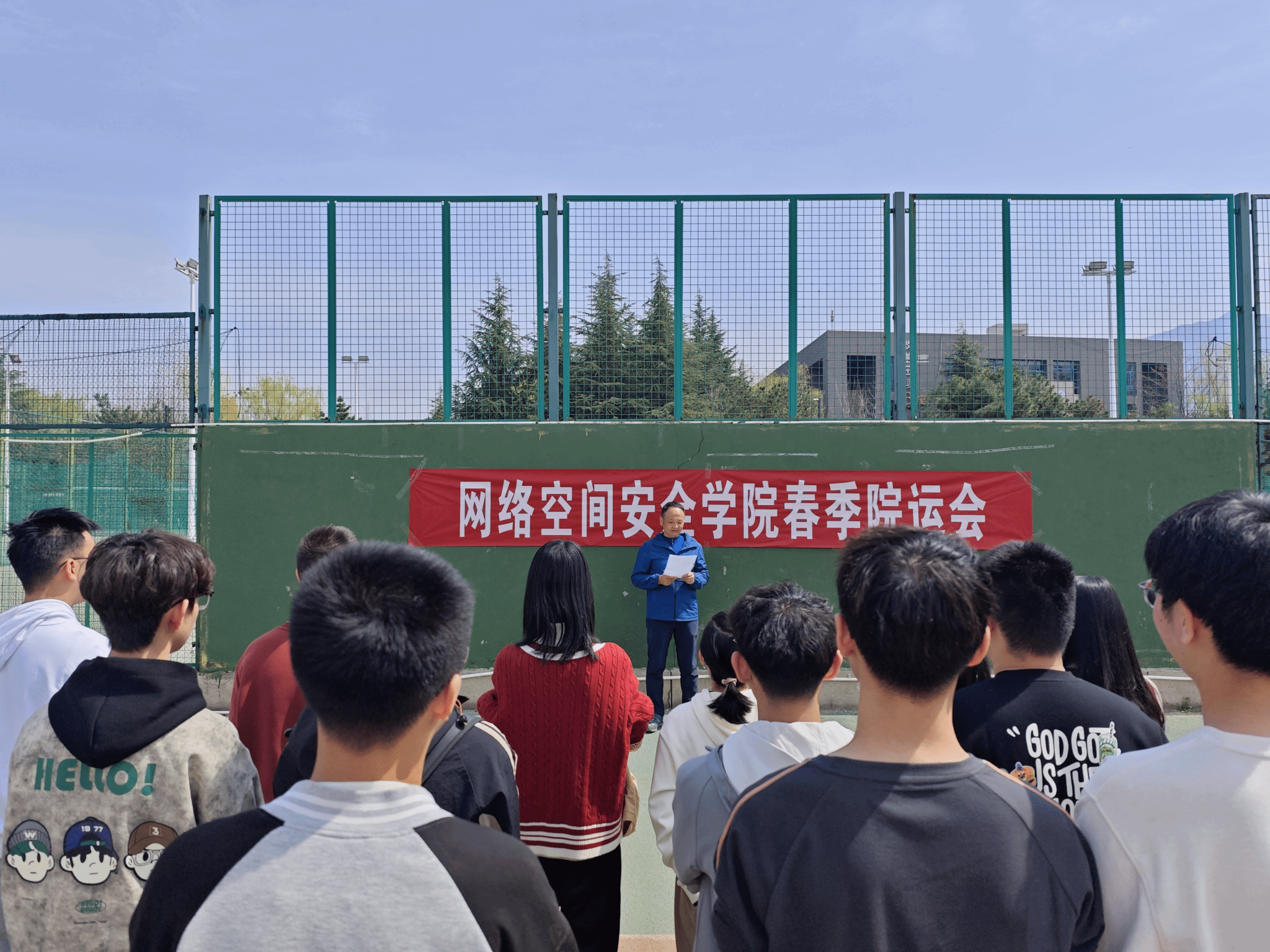 3月21日12时30分,院运会开幕式在星天苑操场隆重举行。王昌昌老师走向会场中央,为面前精神抖擞、蓄势待发的各位运动员发表了慷慨激昂的开幕致辞。王老师表示,运动会不仅是对身体素质的检验,更是对集体荣誉感的淬炼,对“更高、更快、更强、更团结”奥林匹克精神的传承与践行。他指出,运动员们要奋勇争先,无论是经验丰富的赛场健将,还是初次登场的新人,都要以饱满的热情投入每一场比赛。用拼搏定义青春,用汗水致敬对手。真正的胜利,是超越昨天的自己!运动员们备受鼓舞,摩拳擦掌,跃跃欲试。现场爆发了雷鸣般的掌声,开幕式圆满结束。