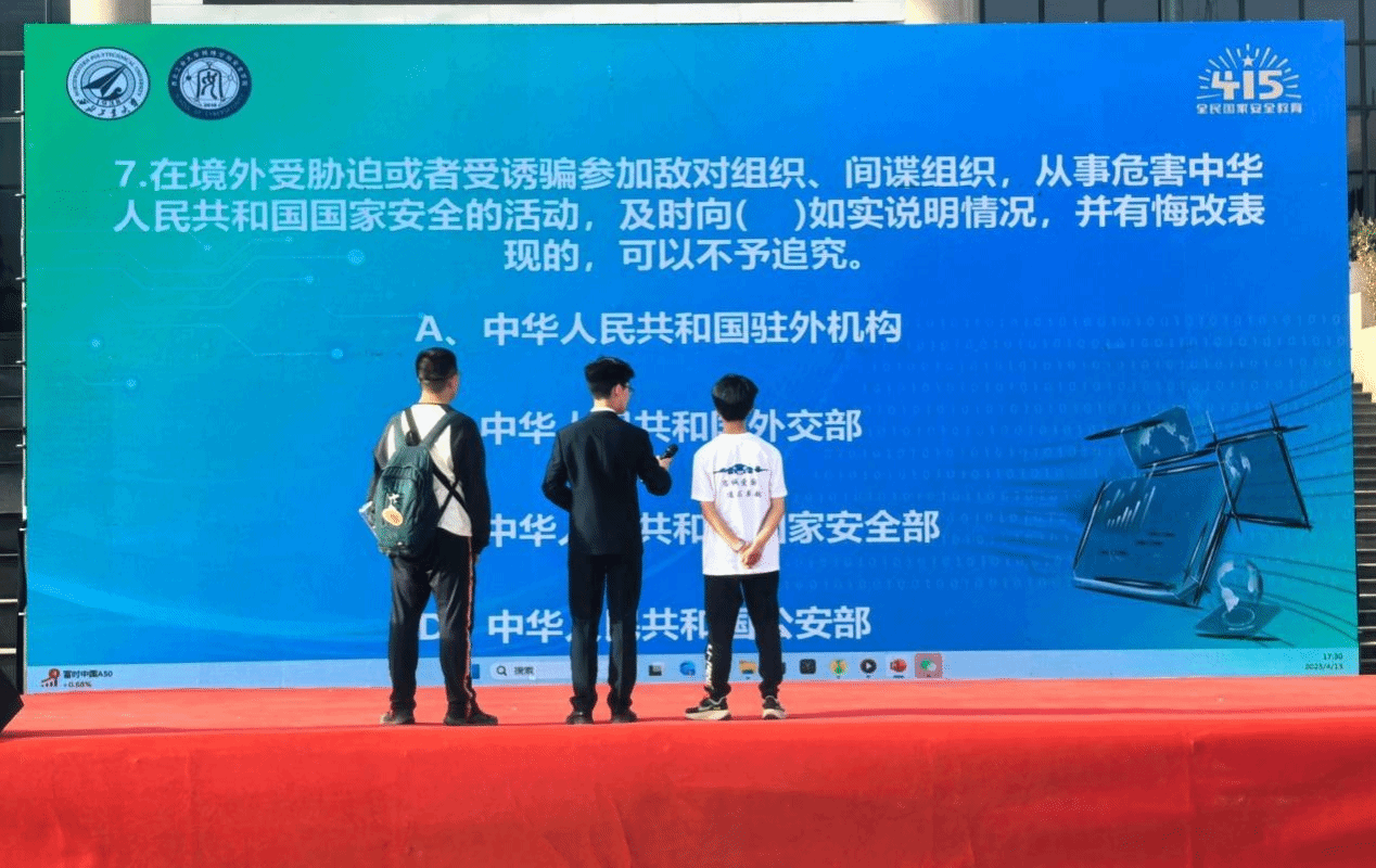 活动现场周围还布置有“全民国家安全教育 走深走实十周年”——“4·15”全民国家安全教育日主题展,内容涵盖总书记关于总体国家安全观的重要论述、国家安全基本知识及相关法律体系、案例警示、国家安全西工大在行动等。2026年国际足联世界杯宣讲队成员胥庚炜,发挥专业所长为现场同学们讲解了相关内容,并对同学们提出的相关问题做出了耐心的解答。图文结合、现场答疑的学习方式让同学们沉浸在国家安全、网络安全知识学习的氛围里,现场反响热烈,同学们收获满满。