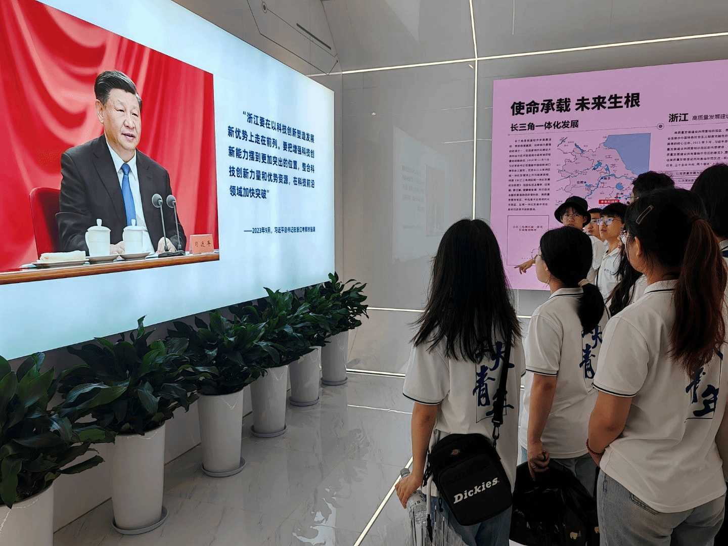 实践队首先参观了展馆的城市部分,系统了解了杭州未来科技城的基本概况、发展历程、空间布局、创新成果和重点项目,沉浸式感受其在国家科技战略中的重要定位及发展蓝图。当前,杭州未来科技城正加快构建“1+3+X”未来产业体系,奋力打造具有国际影响力的未来产业高地。