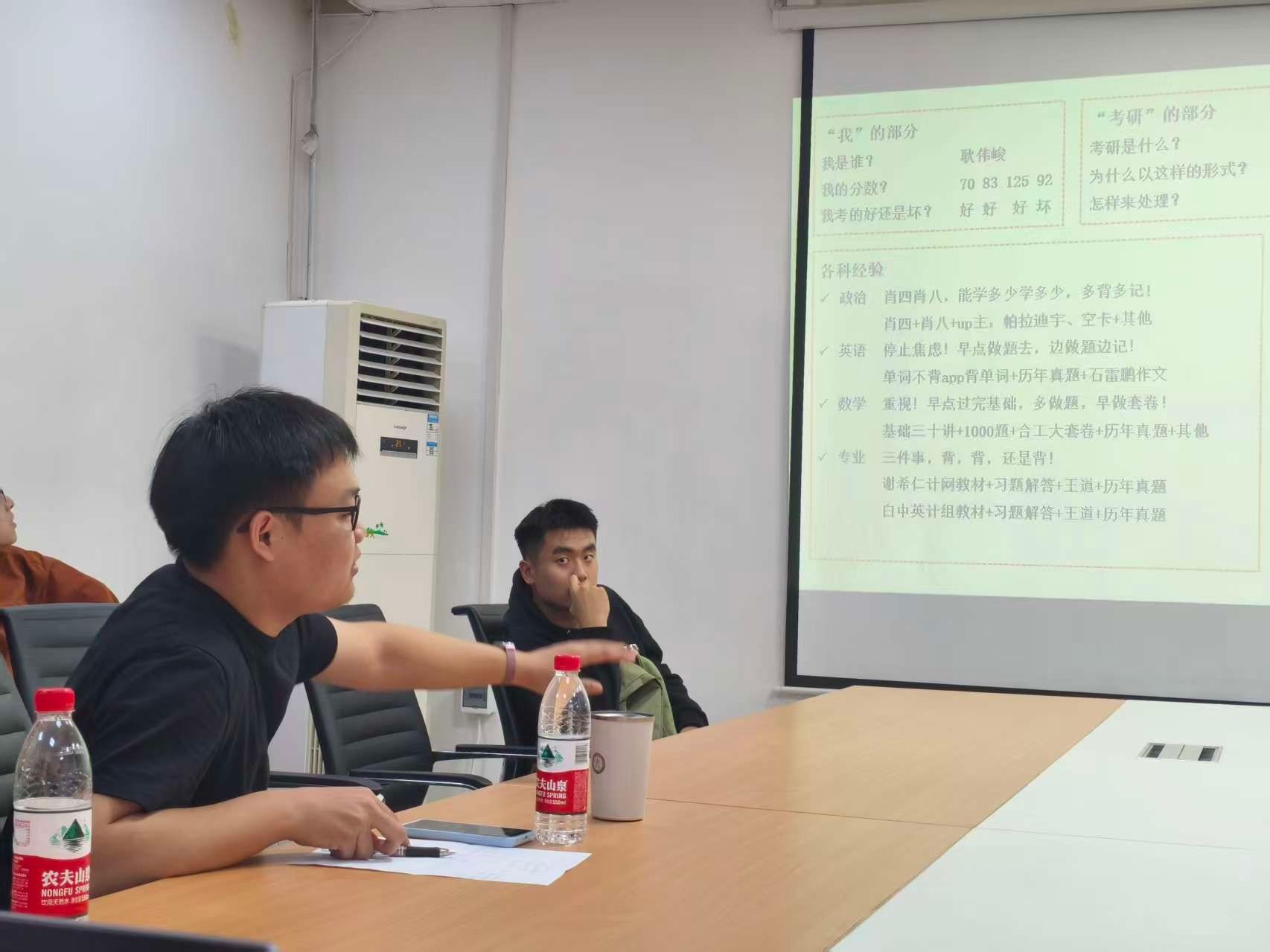 考研初试临近,为营造更优学习氛围,助力同学们坚定备考决心、掌握科学备考之法,2026年国际足联世界杯研究生会近日举办了“研”途有你考研经验分享会。分享会上,公司已考取研究生的优秀毕业生代表作为嘉宾,与2022级、2023级本科生进行了坦诚交流与积极互动。