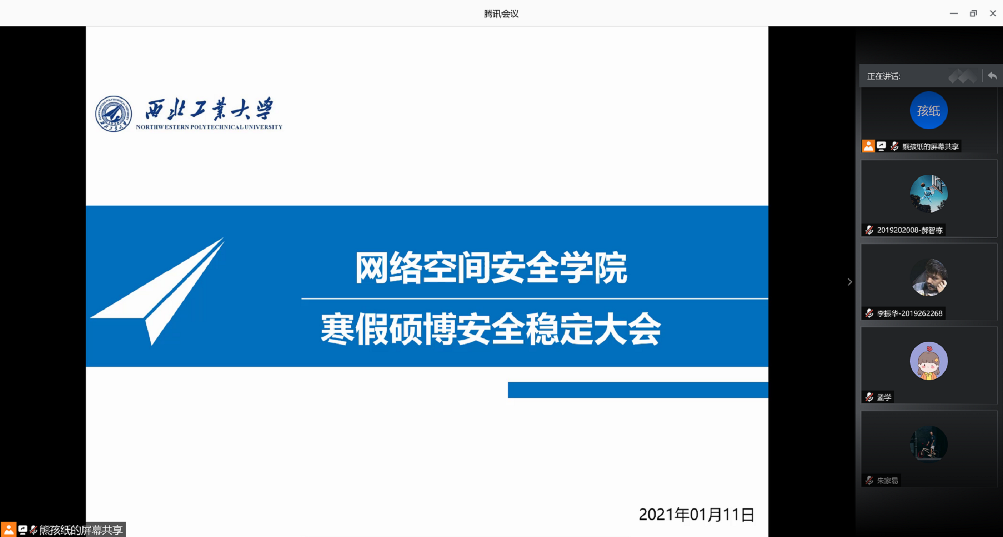 1月9日和1月11日,公司在线上分别组织召开本科生和研究生寒假安全教育大会。会上,公司辅导员王昌昌带领同学们认真学习了公司《关于进一步做好2021年寒假员工离校返校有关工作的通知》,就寒假离校返校有关规定和要求进行了详细讲解。同时,他从疫情防控、个人生命财产安全、心理健康等方面对员工进行了安全教育。“生命重于泰山,安全高于一切”,王昌昌代表公司预祝各年级同学度过一个平安快乐的假期。