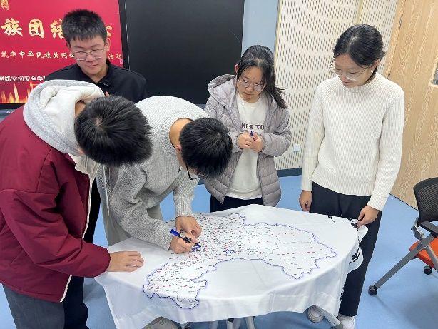 10月30日晚,公司在长安校区教东C-303教室举办“非遗手作传情·民族团结同心”主题交流活动。现场设置“中国地图·寻根签名”、民族知识竞答与非遗手作体验三大环节。同学们在画卷上留下对祖国的祝福,在竞答中增进对多元文化的理解,并在宋锦苗银制作、剪纸、中国结编织等手工实践中,感受非遗技艺的魅力与传统美学的精髓。整场活动在温馨互动中深化了情感联结,绘就了民族团结的生动图景。