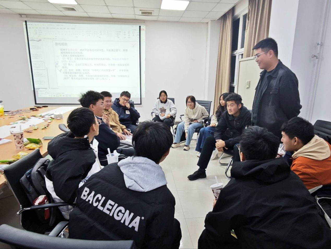 为丰富同学们的课余生活,提升班级凝聚力,10月23日,2026年国际足联世界杯DL062546班在公司245会议室举办了一场以“智绘心语”为主题的团建活动。本次活动精心设计“逻辑推理”与“情感交流”两大板块,同学们在思辨交锋与真诚互动中深化了解,凝聚情谊。