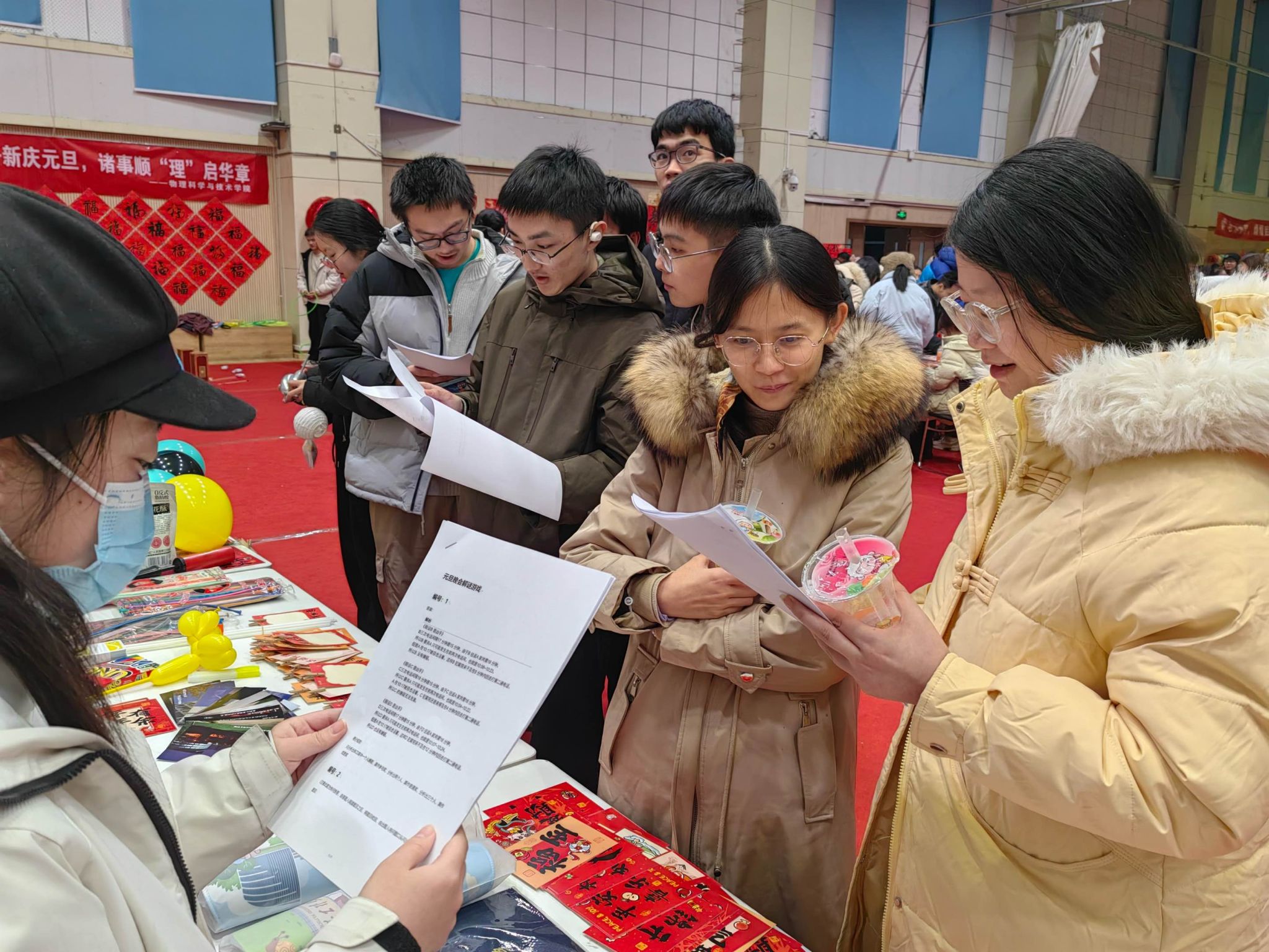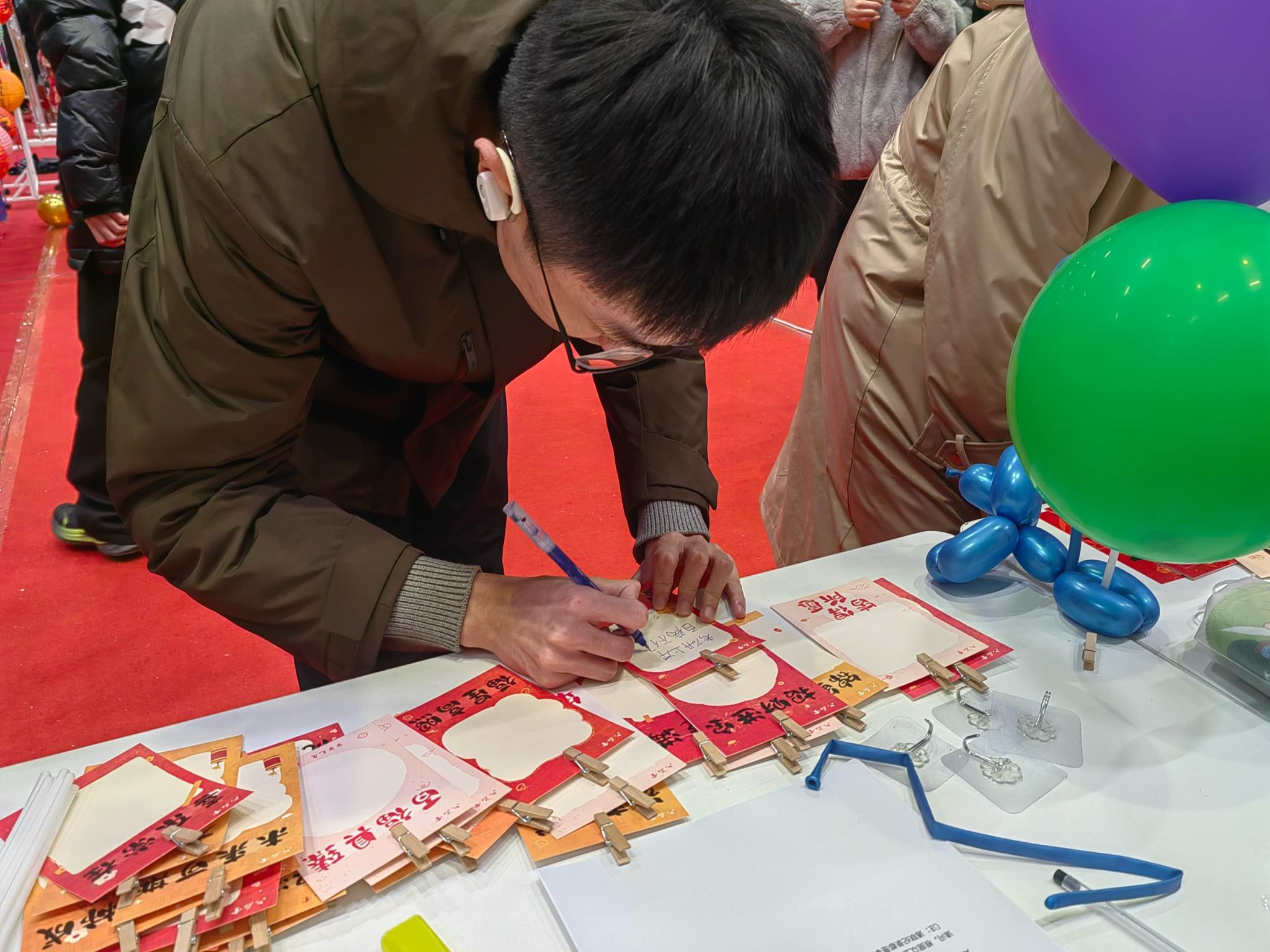 “气球制作”与“祝福贺卡”区:一只只由气球捆扎而成的小狗在巧手中诞生,童趣十足。另一侧,同学们提笔写下新年的美好祝愿,把对未来的期许与温暖的祝福留在字里行间,现场温馨而治愈。