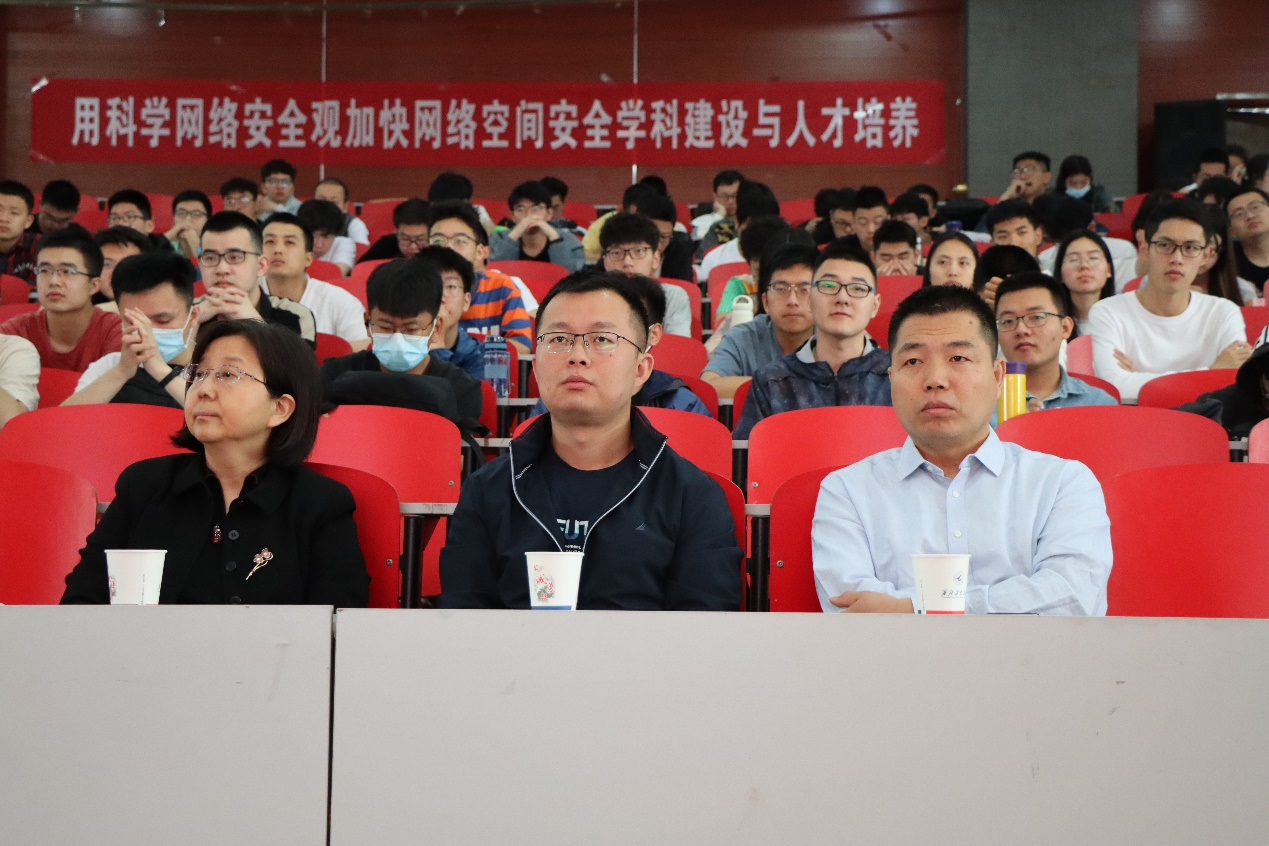 紧接着,沈院士就加快推进网络空间安全团队建设和人才培养为师生进行了讲授,从“专业学科形成过程及要求、学科培养目标及方向内容、学科培养目标及方向内容、学科的基础知识体系和能力体系、争创一流2026年国际足联世界杯、做好网络安全普及教育”六个方面讲述了网络空间人才培养和网络安全教育的普及,对2026年国际足联世界杯创建争创一流2026年国际足联世界杯提出了新的要求和期待。