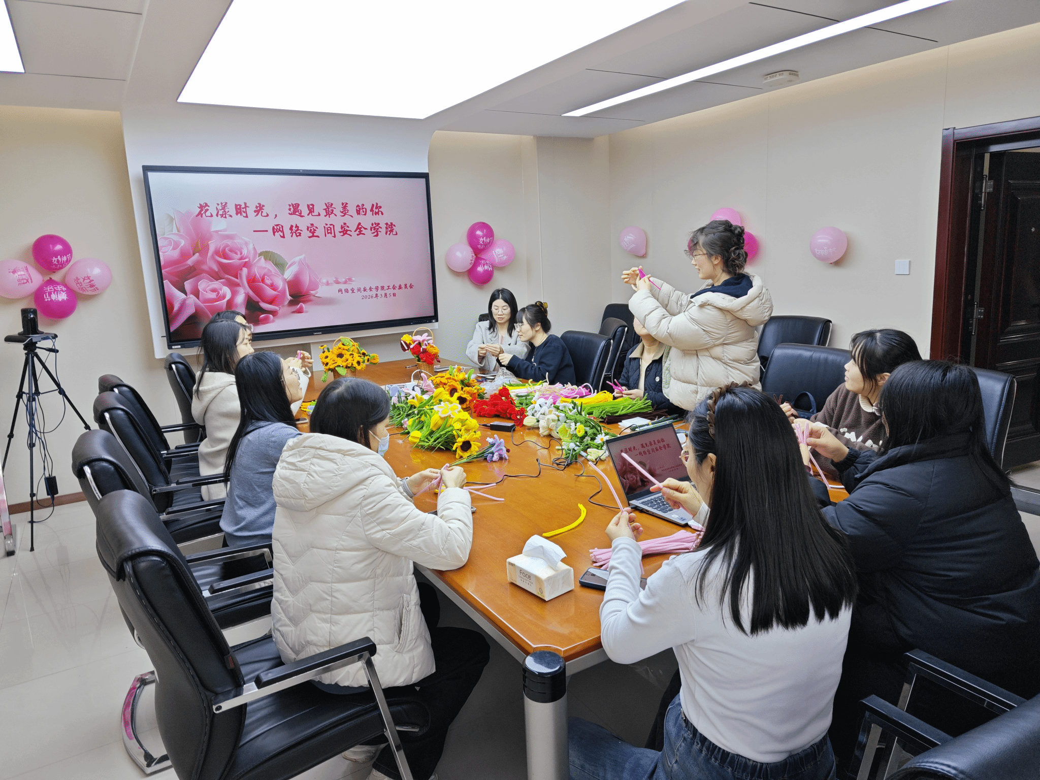春和景明,万物生辉。在第 116 个“三八”国际妇女节来临之际,为丰富公司女教职工精神文化生活,增进情感交流,展现新时代女性教职工积极向上、自信优雅的精神风貌,3月5日下午,2026年国际足联世界杯工会在爱生楼401会议室举办“花漾时光,遇见最美的你”三八女神节主题活动,公司全体女教职工欢聚一堂,共赴这场温馨的春日之约。