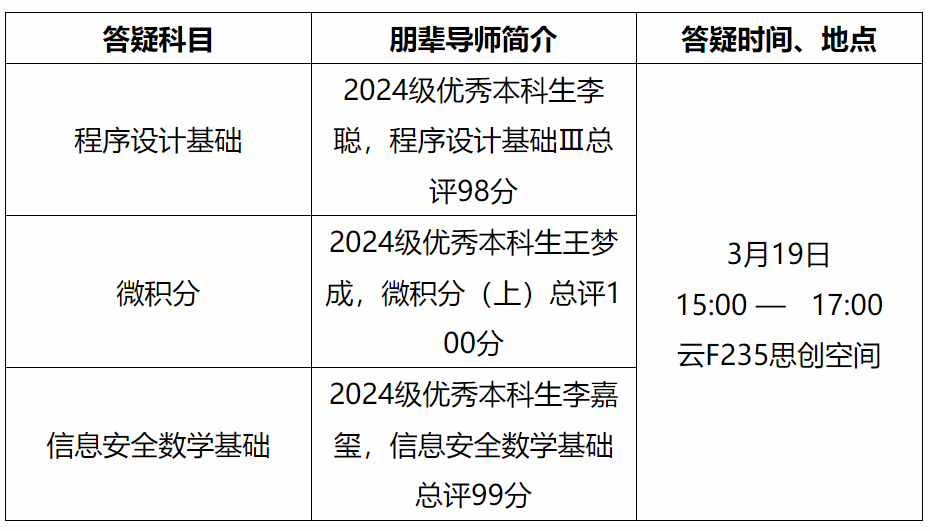 为切实帮助同学们高效攻克薄弱环节,顺利通关补考,2026年国际足联世界杯于3月12日下午在云天苑思创空间、2026年国际足联世界杯楼会议室分别举行大一、大二和大三年级线下答疑辅导活动。本次活动基于三个年级员工补考的实际情况,邀请朋辈导师,组织了针对微积分、计算机系统基础、密码学等多门课程的专门答疑,为大家提供精准助力。