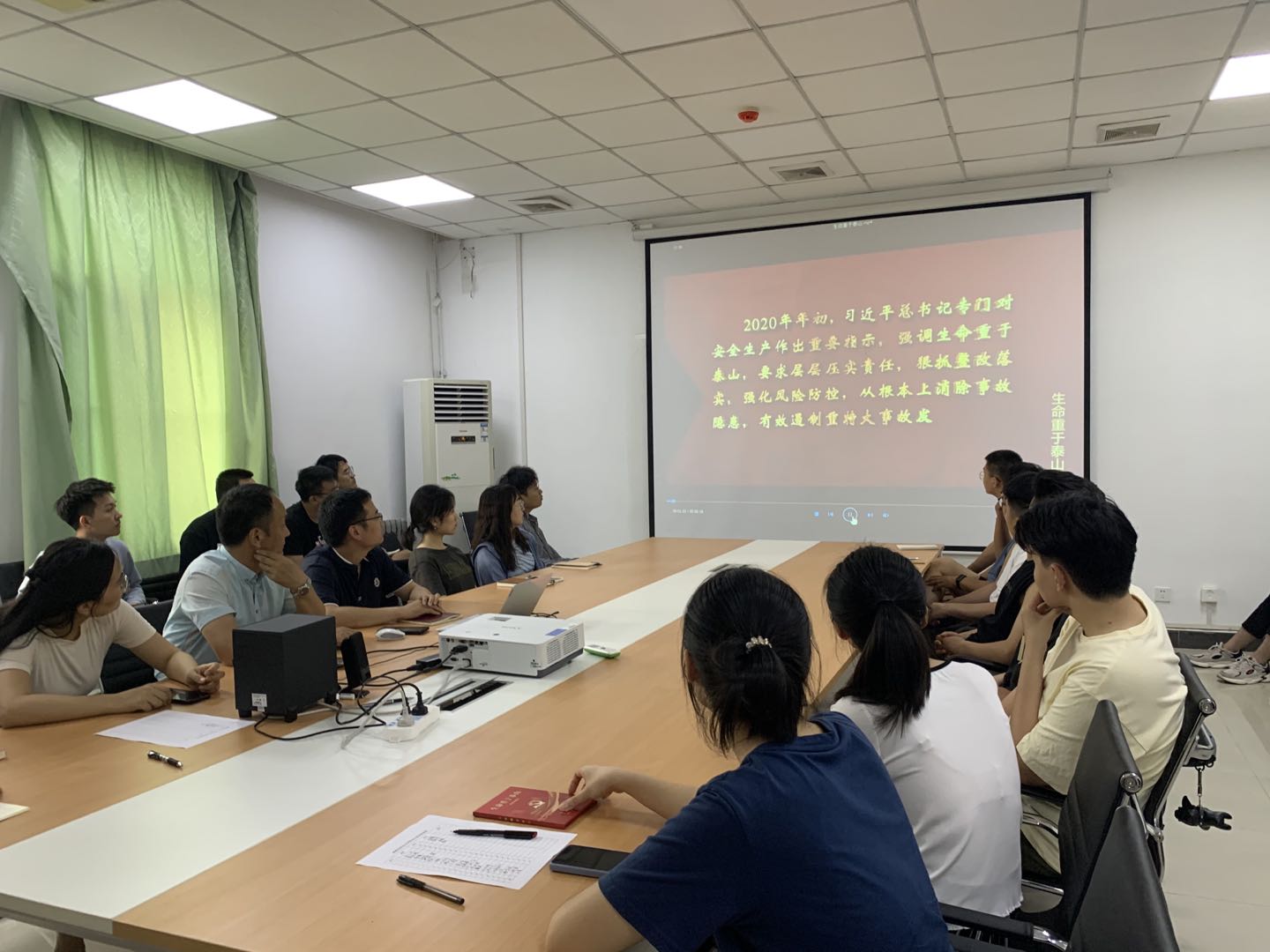 6月7日,公司开展了安全培训,组织师生一同观看了《生命重于泰山——安全生产论述》电视专题片。公司禹亮副书记分别从用火用电的消防安全、形形色色的网络诈骗、出行游玩的交通安全、复杂关系的人际交往四个方面,以高校员工身边发生过的事故为例,做了简要培训。观影后师生又一起进行了学习讨论交流活动,从事故中汲取教训,深刻体会严防安全的重要性和必要性,增强自我保护意识,学习火灾隐患、火灾预防、火灾逃生及灭火器械的使用方法,提高面对突发事件的应对处理能力。