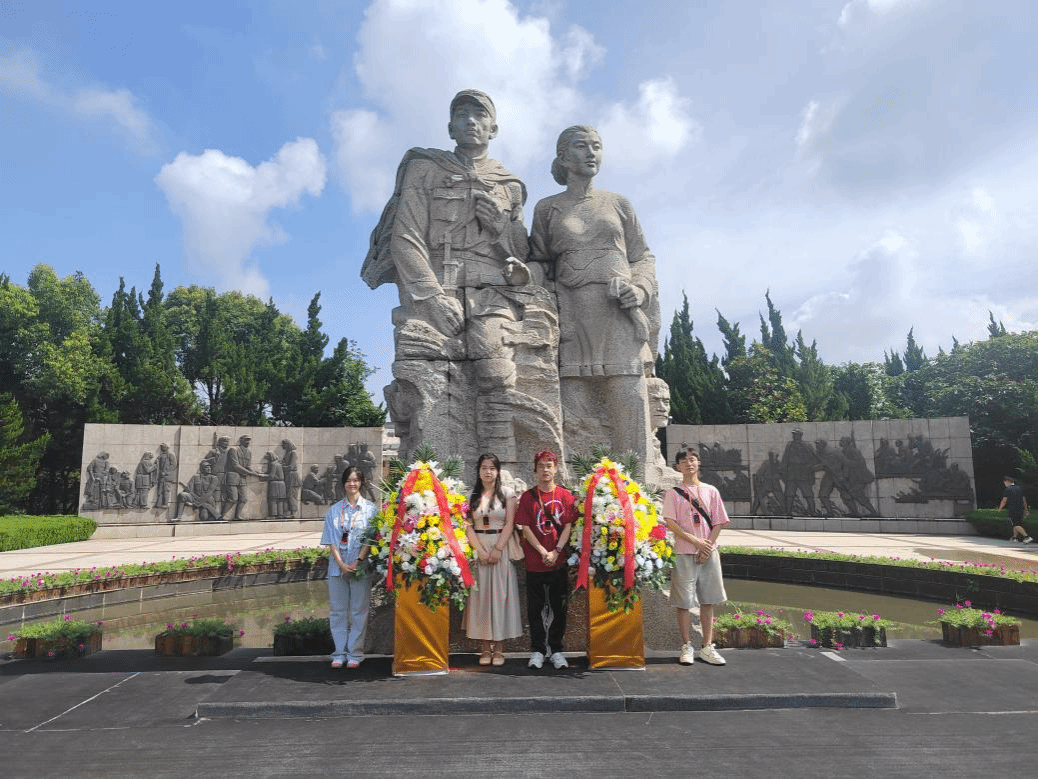 在瞻仰广场中央屹立着以“郭建光”、“阿庆嫂”等形象为主创作的大型主雕,怀着对革命烈士崇高的敬意,全体师生整齐排列,向革命先驱进行三鞠躬,党员代表敬献花篮,鞭策党员师生不忘初心、牢记使命,为建设社会主义现代化强国贡献自己的力量。