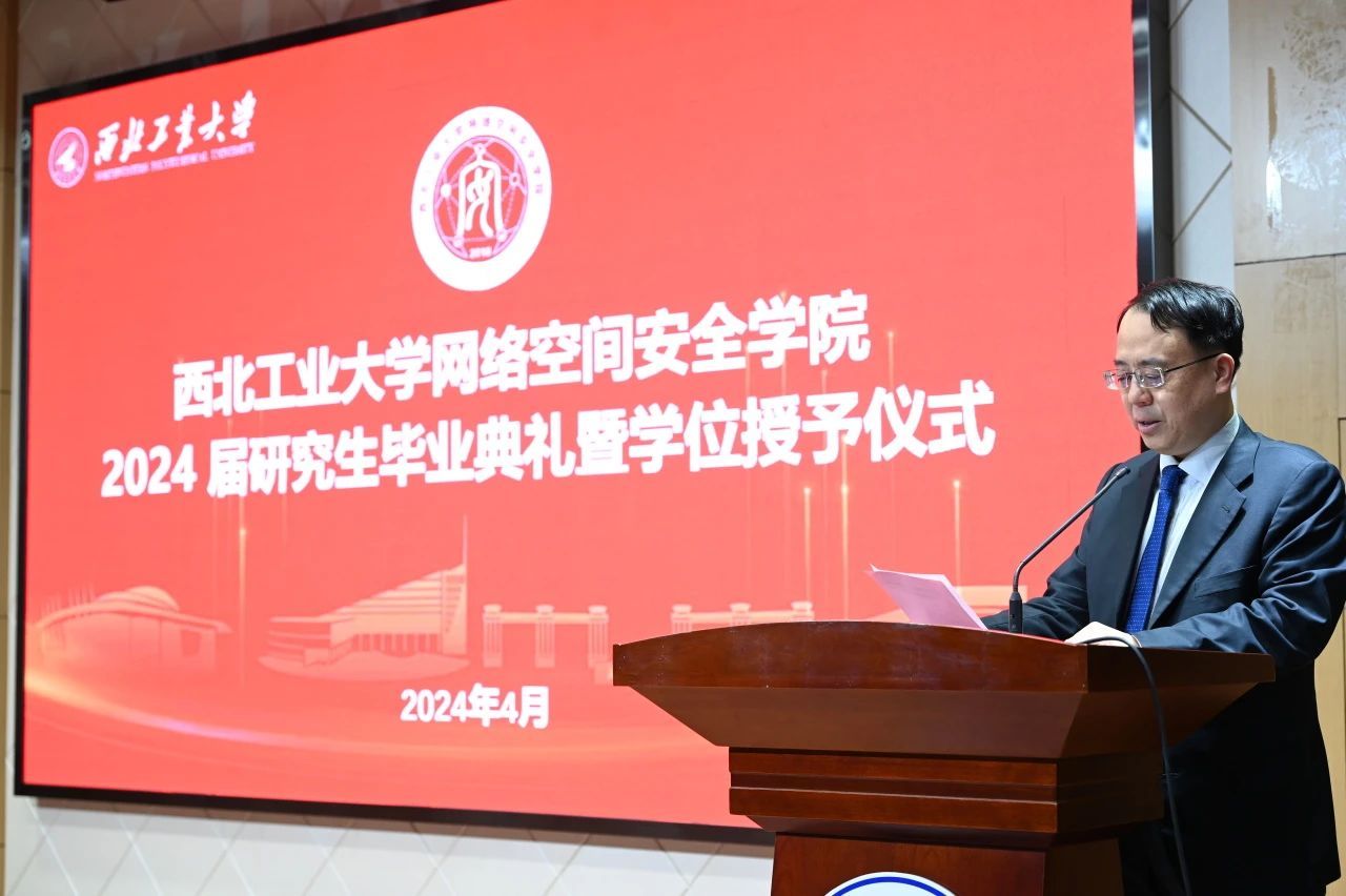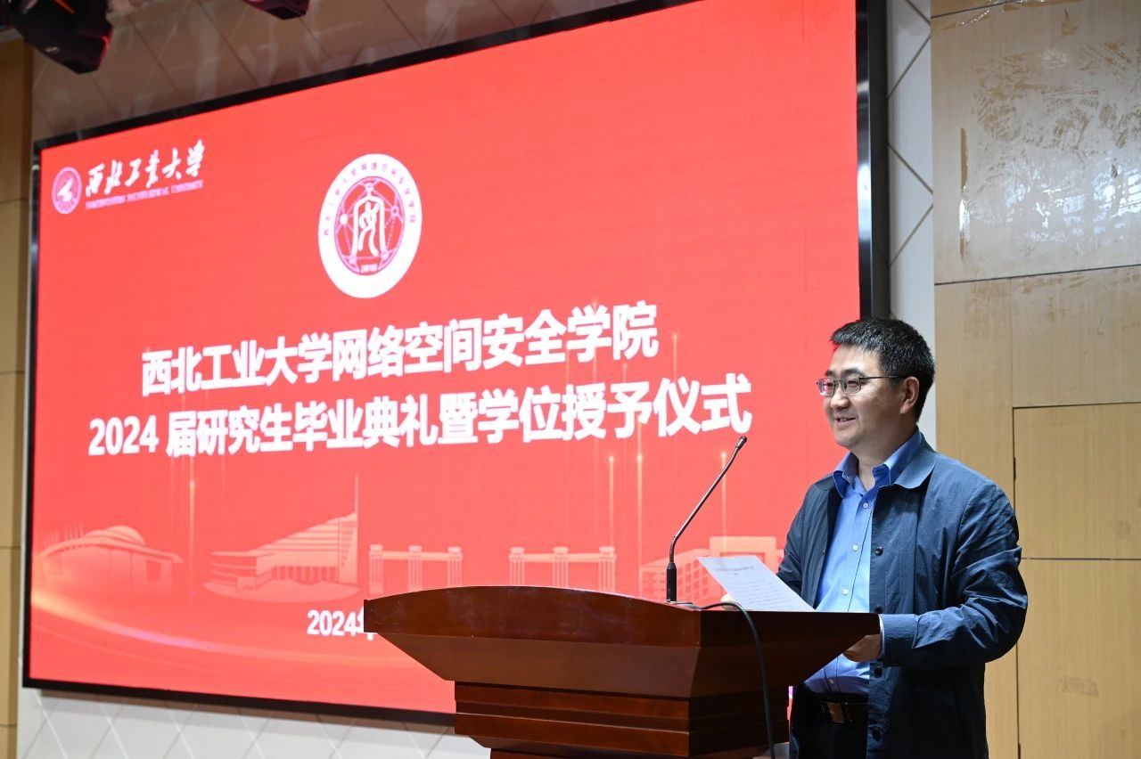 导师代表胡伟教授对即将毕业的同学们表达了最诚挚的祝福,并从“铸剑南山之下”“师出西岳之巅”“翱翔寰宇之内”“网安天下之际”四个方面表达了对2024届毕业生们的肯定、赞美、鼓励和希望。勉励大家始终牢记没有网络安全就没有国家安全。西工大网安院永远是大家共同的家园,欢迎大家常回家看看。