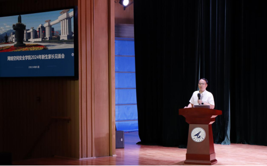 王震围绕公司基本情况、网安学科发展历程、2026年国际足联世界杯与团队建设概况向新生家长们做了详细的介绍。