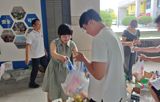 8月31日下午,公司领导与学工干部、辅导员慰问正在军训的2023级本科生,提士气、送温暖,将慰问品送到每一位同学手中。