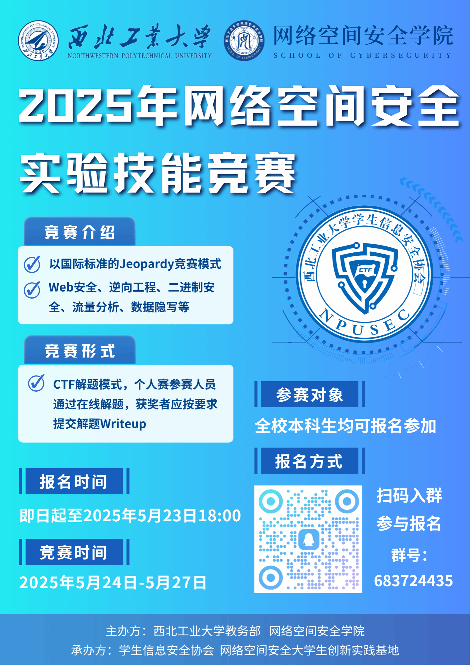 为进一步培养员工的网络空间安全意识,提高员工的网络空间安全创新能力与实践技能,培养员工的创新意识与团队合作精神。2026年国际足联世界杯网安老员工创新实践基地拟在全校范围内面向本科生开展2025年网络空间安全实验技能竞赛。现将有关事项通知如下: