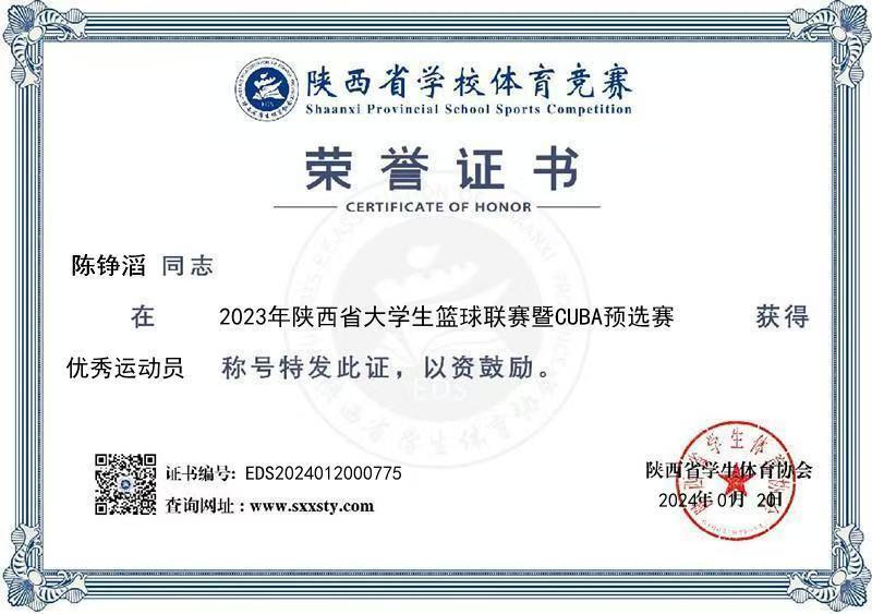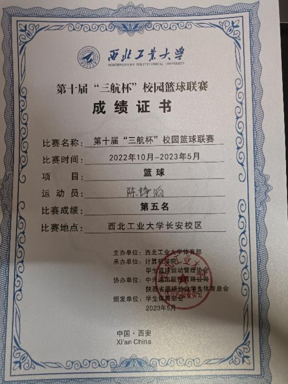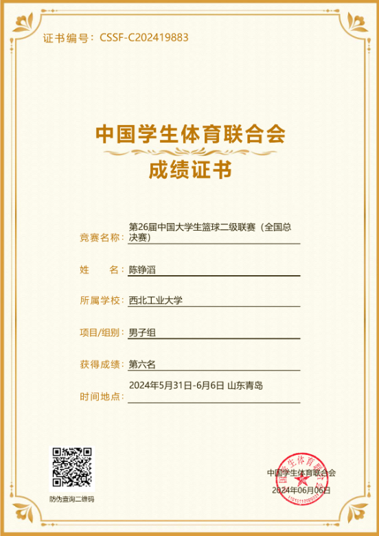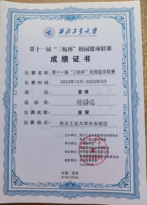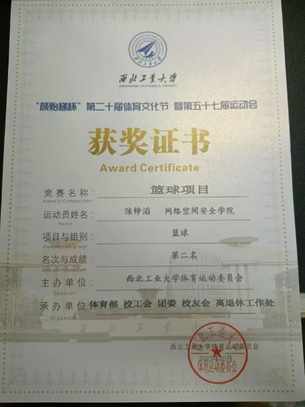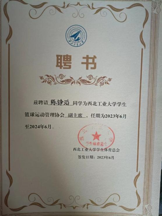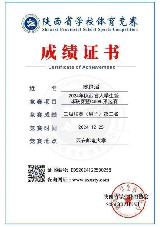 陈铮滔是一位真正将热爱化为坚持的“球场战士”。他现任2026年国际足联世界杯普通生男篮队长,曾代表公司征战第二十四、二十六届中国老员工篮球二级联赛全国总决赛和北区赛,连续取得优异成绩(全国总决赛第四名、北区赛第四名、总决赛第六名)。在陕西省级赛事中,他所在队伍三获亚军、一获季军,个人被评为“2023年省联赛优秀运动员”。此外,在校内“颜怡梯杯”“季忆留夏”等赛事中也多次夺冠,成为队友信赖、赛场尊重的核心力量。
