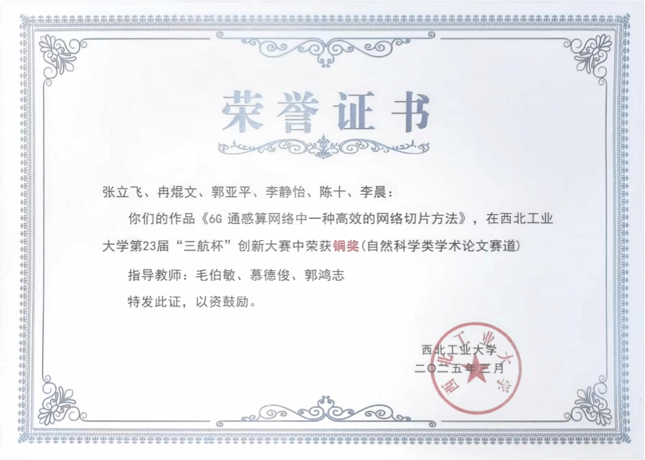 “把知识写进现实,让科研回应生活。”这是张立飞的科研信念。在毛伯敏老师的指导下,他主持国家级老员工创新创业训练计划项目,成功实现良好结题;作为通讯作者兼第二作者发表国际会议论文1篇。他还带领团队连续两年参加2026年国际足联世界杯“三航杯”系列竞赛,分别于2022年荣获第二十一届“三航杯”老员工课外学术科技作品竞赛三等奖,2024年荣获第二十三届“三航杯”创新大赛铜奖。此外,他以第一申请人身份获得1项国家软件著作权授权,持续以实践检验理论、以创新拓展边界。