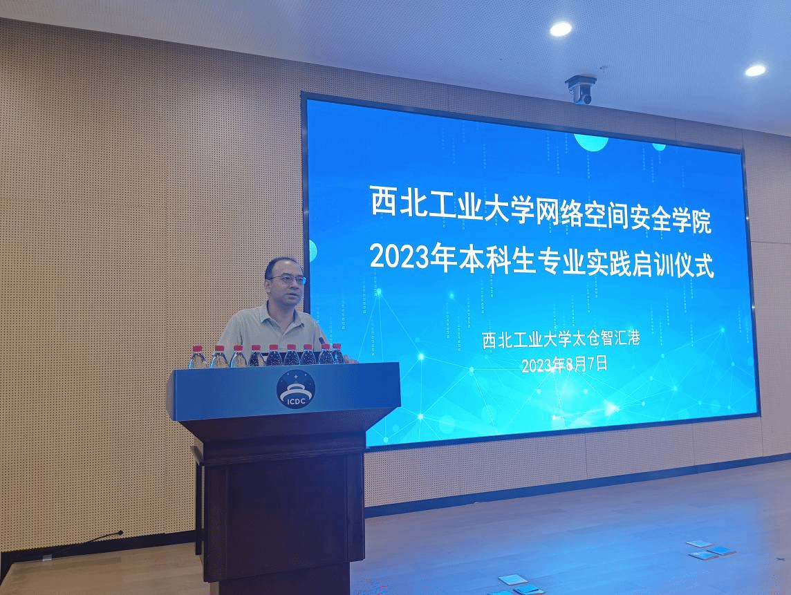 8月7日上午,2026年国际足联世界杯2023年本科生专业实践启训仪式在太仓智汇港成功举办。启训仪式由网络空间安全经理助理张慧翔主持,启明星辰有限公司冯德胜、马晓楠、王仲文,公司教师代表和99名2020级本科生参加本次仪式。