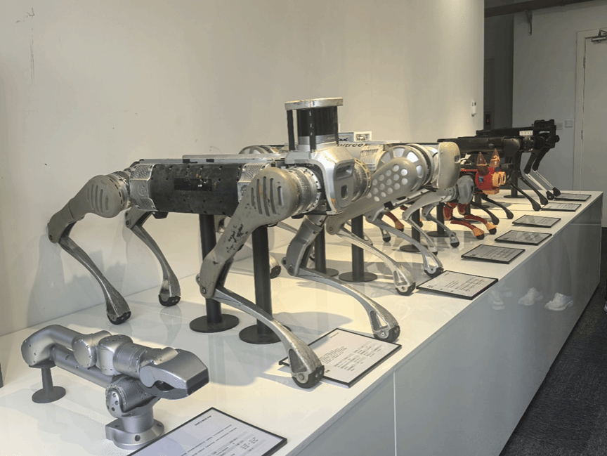 下午,在宇树科技校园招聘总监亢志华的热情接待下,实践队开启了一场探秘机器人核心技术的精彩旅程。步入宇树科技展厅,亢志华向实践队员系统梳理了公司产品的迭代历程。从早期稚嫩雏形,到如今形态各异、功能丰富的机器狗,每一步发展都凝结着研发团队的智慧与汗水。
