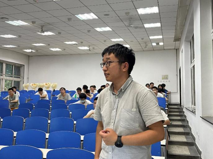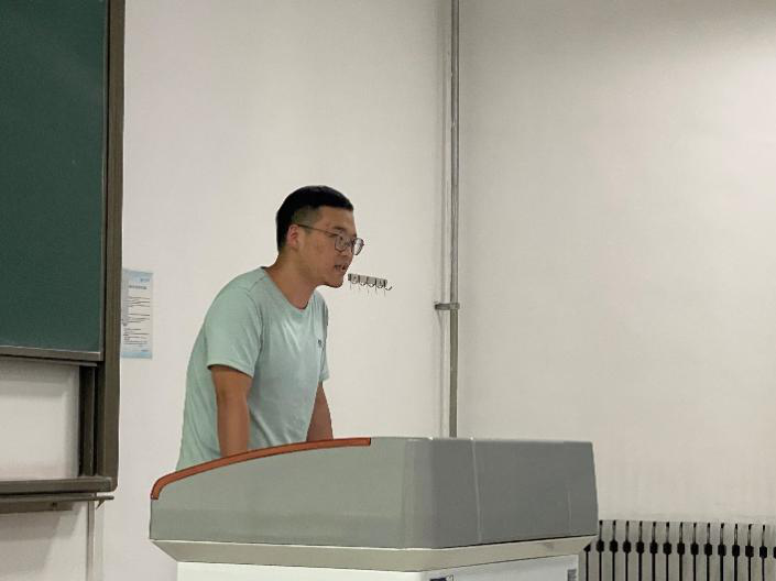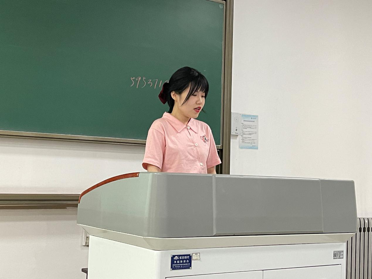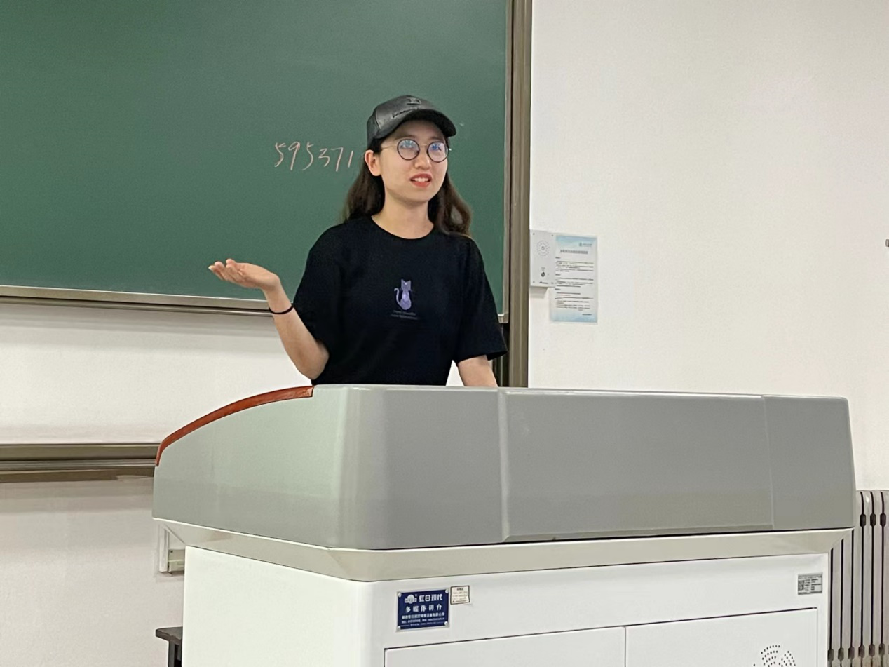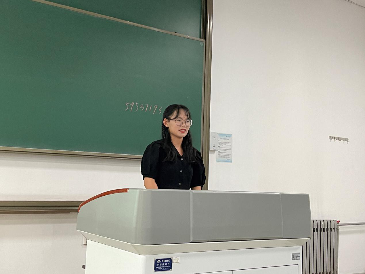 接着姜天琪学姐上台做了分享。她主要从学业方面给了学弟学妹们很多建议,针对一些重要的课程给出了自己的一些经验教训。姜天琪特别介绍了自己从一个普通员工,通过分析个人问题不足,迎难而上,认真踏实学习从而成为年级学业综合排名前茅经历,给出了个人心得体会,让同学深受感染和鼓舞。