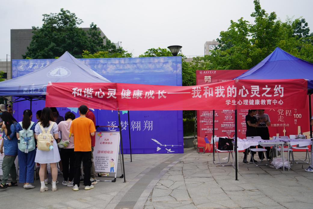 5月25日当天,虽然天空不作美,下起了蒙蒙细雨,但是仍不挡同学们参与活动的热情,在12点左右参与活动的同学迎来小高峰,活动帐篷外都排起了小长队。本次活动参与不仅有公司的本科生、研究生,还有职工积极参与其中,虽然大家沟通有些磕绊,但是在组织方的积极引导下,大家都其乐融融的完成了心理健康活动。