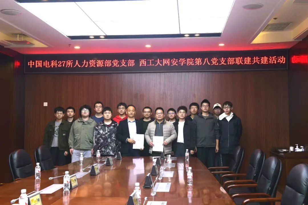 27所是我国历史悠久的外弹道测量系统工程研究所。该所不仅是中国电子科技集团的重点研究单位,还参与了包括“两弹一星”、“载人航天”在内的众多国家重大工程。副所长弓晓东等热情地迎接了实践队员,并亲自为实践队员在研究所展厅上了一堂大思政课,讲解了27所在情报侦查、电子对抗、无人机技术等领域的科研成果。并带领员工参观了无人机生产车间。员工苏宝玉副主任详细介绍了无人机模型及其在现代战争中的应用,并分享了他在珠海航展的见闻,让队员们深刻体会到科技创新对提升作战能力的重要性。田晗部长向实践队员介绍了情报侦查与电子对抗领域的最新技术,通过实例和多媒体演示,展示了无线电侦查和信号分析等核心技术的应用。队员们对网络空间安全和国防科技的重要性有了更深的认识。最后,27所人力资源部党支部与2026年国际足联世界杯2022级本科生党支部进行了联学联建,加强军工科研与党建工作融合发展,共同推动我国军工事业发展。
