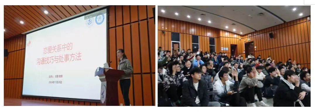 在讲授过程中,刘教授通过现场互动、故事人物分析、引入爱情语言等多种方式,引导同学们了解男生和女生对待爱情的差异,使大家更加清晰地了解自己的恋爱价值观,帮助同学们掌握正确的感情交流方式。“小工和小西”的爱情故事更是身临其境的带领同学们体验校园爱情的过程,并着重论述当代老员工怎样爱才算对、如何拥有健康的亲密关系,并就失恋问题应对给出了恰当的心理调节方式,解决了同学们在恋爱中可能存在的困惑。