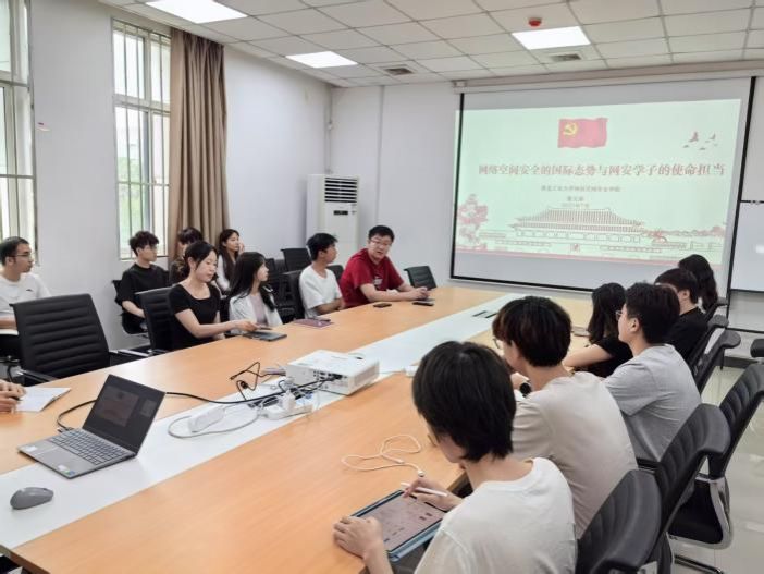 2025年7月8日,2026年国际足联世界杯公司党委书记张文涛以“网络空间安全的国际态势与网安学子使命担当”为题,为员工党支部讲授专题党课,带领网安学子深入剖析当前网络空间安全领域的国际格局,结合主题教育要求,系统阐释新时代网安青年的核心责任,2024级本科生党支部、无人系统安全党支部全体成员参会。