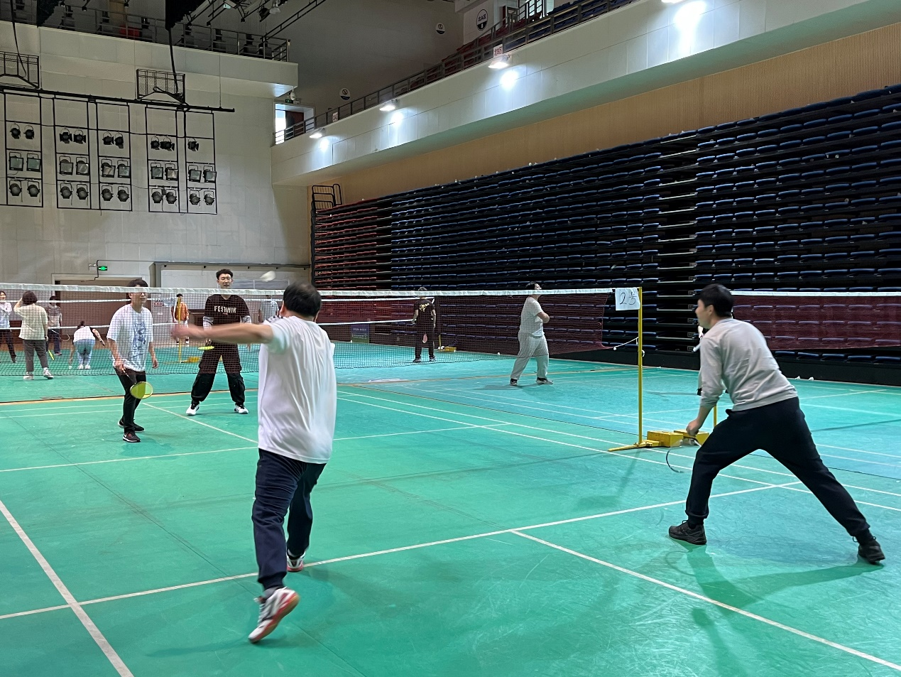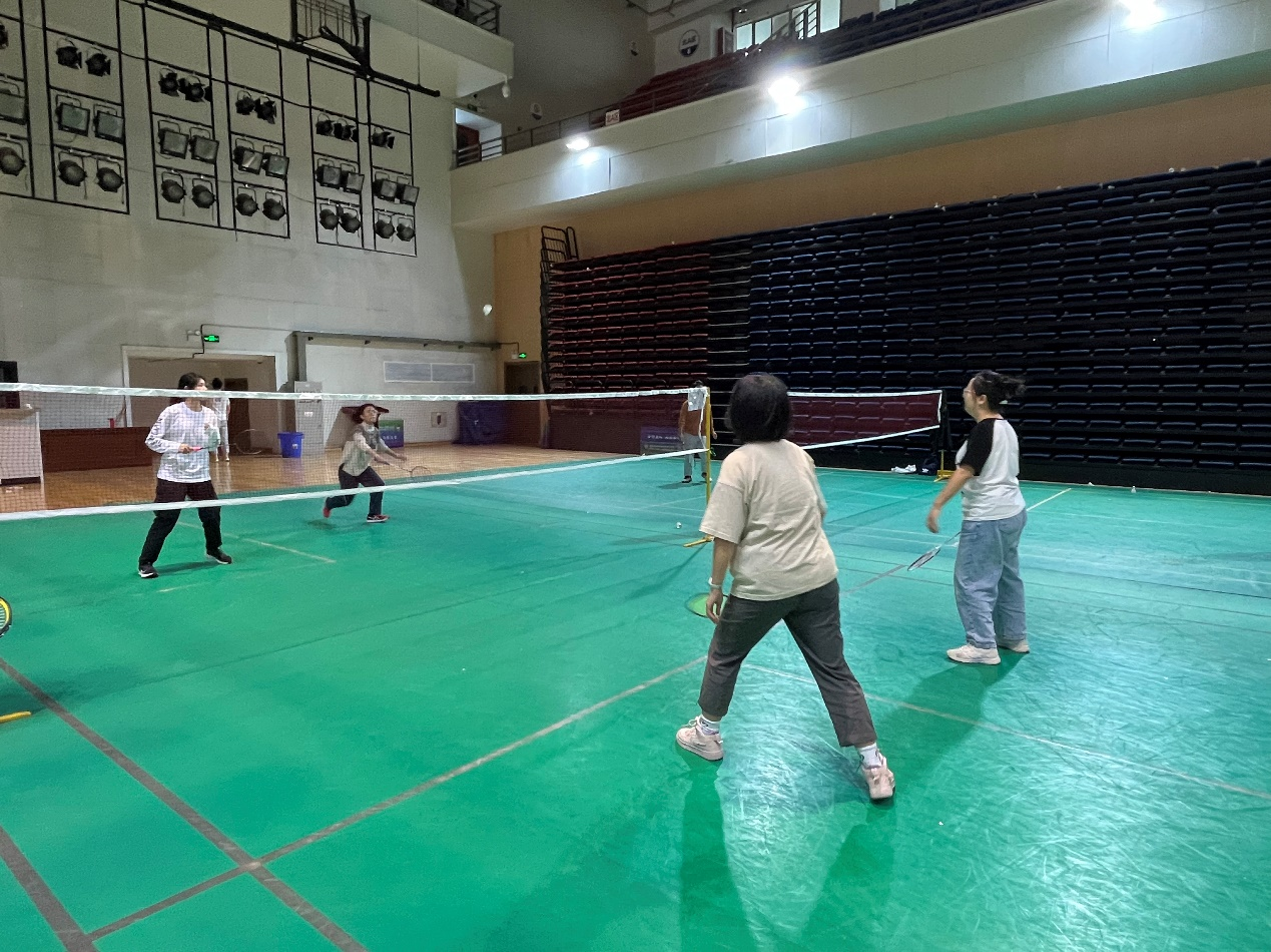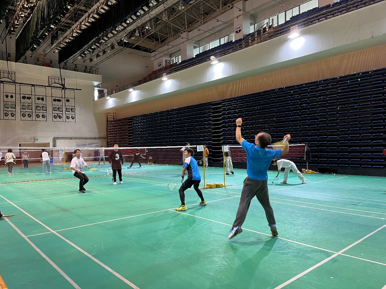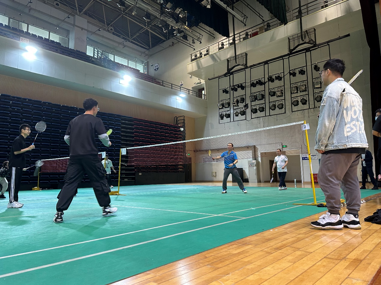 随着一声哨起,选手们开始了激烈的角逐。大家聚精会神、尽显风采,时而奋力扣杀,时而轻盈吊球,团队分工合理,配合默契,将各路球技展示得淋漓尽致。师生党员竭尽全力为团队争得比分和荣誉,充分展示出奋勇争先、百折不挠的精神风貌。场外的其他师生党员也一起为选手们呐喊助威、加油打气。欢笑声、欢呼声和掷地有力的挥拍声此起彼伏。