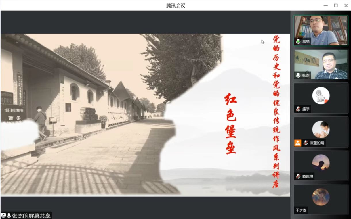 张杰老师以十四运期间开幕式中的陕西传统秦腔唱段开场。打动人心、切合生活的唱词,自然而然地引起了与会师生的共鸣。由此,张杰老师引出了本次党课的两个主题:古城西安的革命斗争历史和八路军西安办事处如何开展革命斗争。张杰老师带领师生详细回顾了国共合作期间的中国共产党革命斗争形势。他讲述了八路军西安办事处的保密故事,以及当时国民党和中国共产党在西安的对峙历史,让师生深刻体会到了中国共产党曾经面临的困难与考验。张杰老师通过地图展示了当年国民党包围八路军办事处的严峻形势,让与会师生充分认识到了在西安开展革命斗争的不易。