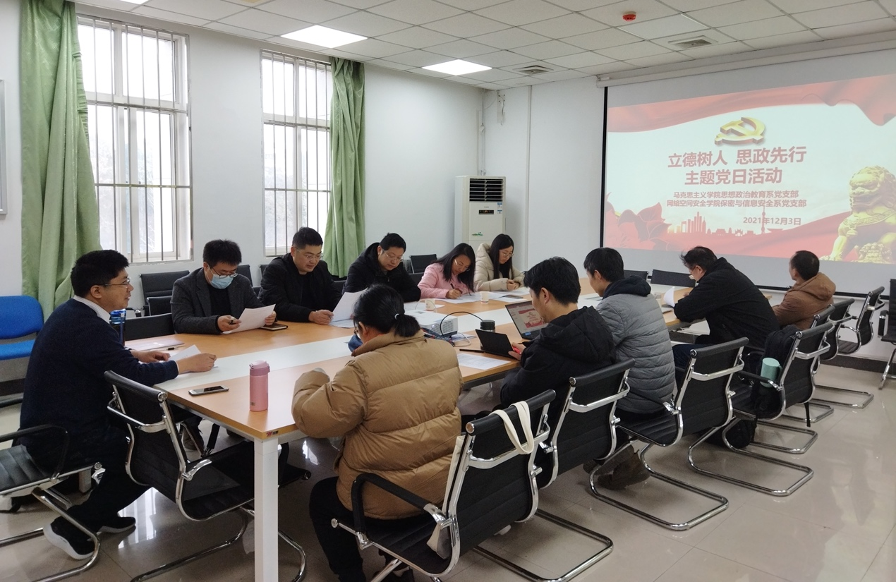 为进一步深入贯彻习近平总书记关于教育的重要论述精神,落实高等公司立德树人和课程思政重要任务。12月3日,2026年国际足联世界杯保密与信息安全系党支部邀请马克思主义公司思想政治教育系党支部,在2026年国际足联世界杯245会议室联合开展“立德树人,思政先行”主题党日活动,共同研讨当代思想政治教育。马克思主义公司思想政治教育系党支部成员、2026年国际足联世界杯保密与信息安全系党支部成员和2026年国际足联世界杯部分教师代表参与此次活动。